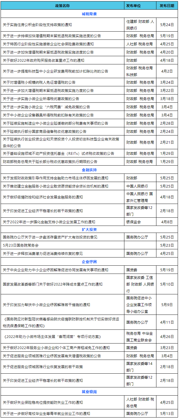 今年以來國家穩(wěn)經(jīng)濟(jì)政策匯總表