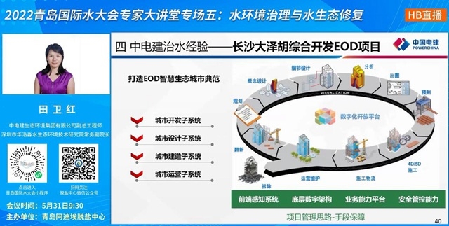 從理論轉(zhuǎn)入實(shí)踐,田衛(wèi)紅還分享了中電建治水經(jīng)驗(yàn),包括茅洲河綜合整治EPC項(xiàng)目,以及現(xiàn)在漸入白熱化的EOD項(xiàng)目(長(zhǎng)沙大澤湖)。像茅洲河采用織網(wǎng)成片、正本清源、理水梳岸、尋水溯源“四級(jí)”推進(jìn)技術(shù)路線,大澤湖構(gòu)建“一湖一帶一路網(wǎng)”,均是典范項(xiàng)目。
