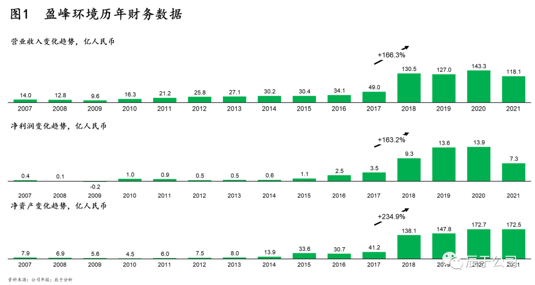 盈峰環(huán)境2015年轉(zhuǎn)型進(jìn)入環(huán)保市場(chǎng),用短短四年的時(shí)間就實(shí)現(xiàn)了營(yíng)收上百億的目標(biāo)。2021年收入達(dá)118億元,凈利潤(rùn)7.3億元,截至2021年末凈資產(chǎn)172.5億元(見圖1)。環(huán)衛(wèi)裝備和環(huán)衛(wèi)服務(wù)是盈峰環(huán)境的兩大業(yè)務(wù)板塊,2021年兩者占營(yíng)收總額近八成,兩者毛利潤(rùn)占總額的55%。其中,環(huán)衛(wèi)裝備自2016年起年銷量便達(dá)上萬(wàn)臺(tái),同時(shí)增速明顯,已連續(xù)21年處于國(guó)內(nèi)環(huán)衛(wèi)裝備行業(yè)銷售額第一名。在中高端環(huán)衛(wèi)裝備市場(chǎng)優(yōu)勢(shì)則更加明顯,有超過(guò)55%的環(huán)衛(wèi)裝備銷量由中高端產(chǎn)品貢獻(xiàn),智慧裝備、新能源裝備等市占率也穩(wěn)居國(guó)內(nèi)行業(yè)前列(見圖2)。截至2021年底,在手環(huán)衛(wèi)服務(wù)項(xiàng)目179個(gè),遍布全國(guó)26個(gè)省市,年?duì)I收30余億,較上年同期增長(zhǎng)54%,無(wú)論是存量市場(chǎng)還是增量市場(chǎng)均位居行業(yè)前三。國(guó)內(nèi)發(fā)展勢(shì)頭強(qiáng)勁的同時(shí),也在東南亞、非洲、歐洲等海外市場(chǎng)進(jìn)行了嘗試:2020年海外業(yè)務(wù)實(shí)現(xiàn)營(yíng)收5600萬(wàn)元,在歐洲,通過(guò)收購(gòu)意大利當(dāng)?shù)仄髽I(yè)切入市場(chǎng),2020年初斬獲羅馬環(huán)衛(wèi)超1億元訂單,并向意周邊國(guó)家拓展;在東南亞與非洲,借助國(guó)家“一帶一路”政策,目前已在印尼、柬埔寨、老撾、加納等國(guó)家中標(biāo)項(xiàng)目。本文試圖抽絲剝繭,剖析盈峰環(huán)境的發(fā)展歷程,總結(jié)其不走尋常路、異軍突起中國(guó)環(huán)衛(wèi)市場(chǎng)的成功因素,為各類企業(yè)、尤其是環(huán)衛(wèi)相關(guān)企業(yè)轉(zhuǎn)型發(fā)展提供啟迪和思考。盈峰環(huán)境異軍突起的四大關(guān)鍵