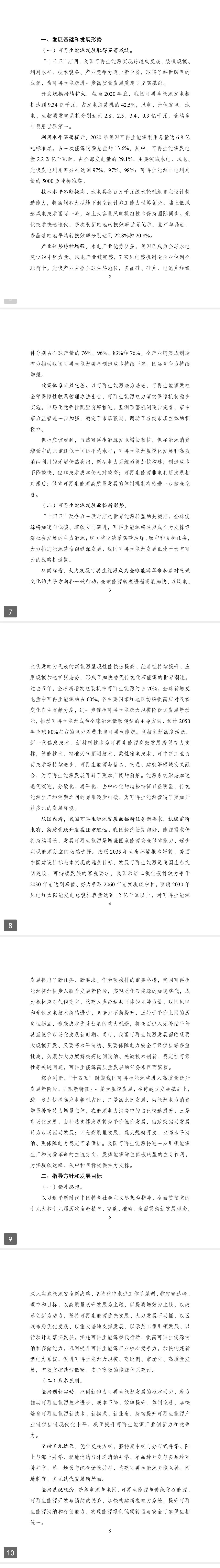 ??為深入貫徹“四個(gè)革命、一個(gè)合作”能源安全新戰(zhàn)略,落實(shí)碳達(dá)峰、碳中和目標(biāo),推動(dòng)可再生能源產(chǎn)業(yè)高質(zhì)量發(fā)展,根據(jù)《中華人民共和國(guó)國(guó)民經(jīng)濟(jì)和社會(huì)發(fā)展第十四個(gè)五年規(guī)劃和2035年遠(yuǎn)景目標(biāo)綱要》和《“十四五”現(xiàn)代能源體系規(guī)劃》有關(guān)要求,我們組織編制了《“十四五”可再生能源發(fā)展規(guī)劃》。現(xiàn)印發(fā)給你們,請(qǐng)遵照?qǐng)?zhí)行。