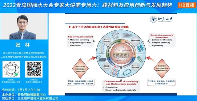 目前,無論是從鹵水提鋰、工業(yè)廢水分鹽資源化處理,還是從濃海水利用、飲用水鈣鎂選擇性去除等各方面來看,單/多價離子鹽分離需求的上漲都是可見的。“納濾是最具潛力的單多價陽離子分離技術(shù)之一”,張林副院長對基于不同分離機理的離子選擇性NF膜設(shè)計路徑進行了分析,還介紹了新型膜材料。