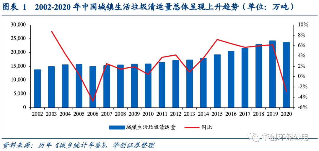(一)疫情影響生產(chǎn)生活,城鎮(zhèn)垃圾清運量小幅下滑