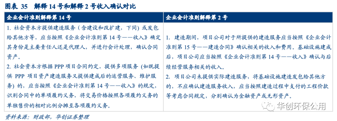 環(huán)保行業(yè)中很多項目的業(yè)主都是地方政府,所以項目大多采用PPP、BOT模式。2021年1月26日,財政部印發(fā)《企業(yè)會計準(zhǔn)則解釋第14號》,規(guī)范了企業(yè)對政府和企業(yè)合作(PPP)項目合同的會計處理,并完全取代了《解釋2號》中BOT項目會計處理方法。該會計政策變更的影響已體現(xiàn)在環(huán)保上市公司發(fā)布的2021年報之中。在本周的小專題研究中,我們將以典型環(huán)保上市公司財報為基礎(chǔ),剖析該會計準(zhǔn)則變更對資產(chǎn)負(fù)債表、現(xiàn)金流量表和利潤表的影響。
