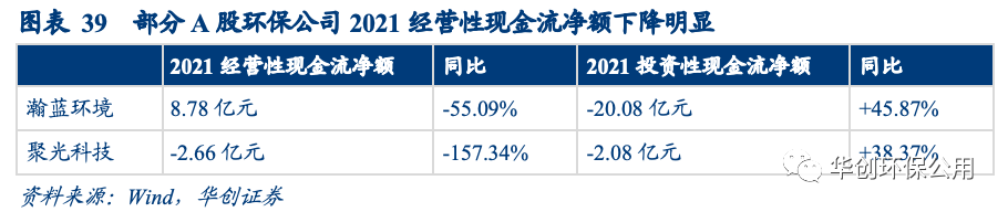 2021年8月,財政部發(fā)布了11個政府和社會資本合作(PPP) 會計處理實施問答,對PPP項目建造期間發(fā)生的建造支出在現(xiàn)金流量表中應(yīng)如何列示做出進一步說明:PPP項目建造期間相關(guān)建造支出作為投資性現(xiàn)金流列示調(diào)整至經(jīng)營性現(xiàn)金流列示。我們認(rèn)為該會計準(zhǔn)則的變更是2021年部分環(huán)保上市公司經(jīng)營性現(xiàn)金流下滑的原因之一。