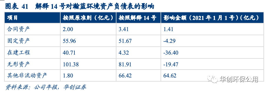 準(zhǔn)則變更對A股環(huán)保公司經(jīng)營性現(xiàn)金流影響明顯。以瀚藍環(huán)境為例,執(zhí)行新準(zhǔn)則后,公司經(jīng)營性現(xiàn)金流同比減少55.09%,投資活動現(xiàn)金流同比增加45.87%,如剔除解釋第 14 號的影響,經(jīng)營活動產(chǎn)生的現(xiàn)金流量凈額約為 20 億元,同比增長約2.24%。