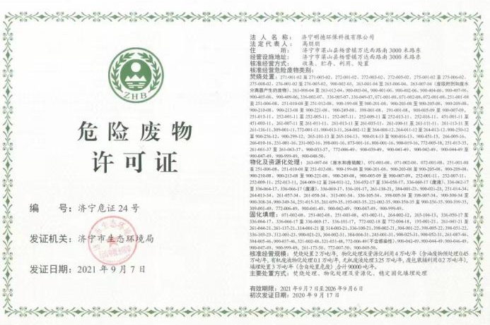 ▲ 濟(jì)寧明德項(xiàng)目成功申領(lǐng)5年期
