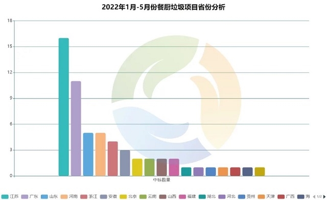 ▼2022年1月-5月餐廚垃圾項(xiàng)目省份分析