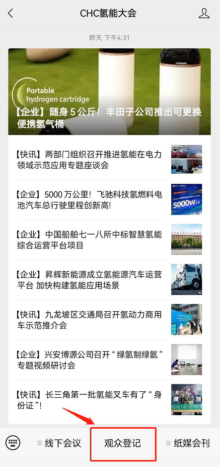 觀眾領(lǐng)取門(mén)票通道:搜索公眾號(hào)“CHC氫能大會(huì)”