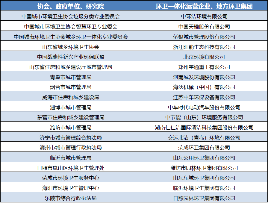 邀請嘉賓:全國優(yōu)秀城市代表、山東省16地市政府主管單位,地方國資環(huán)衛(wèi)集團(tuán)、環(huán)衛(wèi)一體化運營企業(yè)高層領(lǐng)導(dǎo)