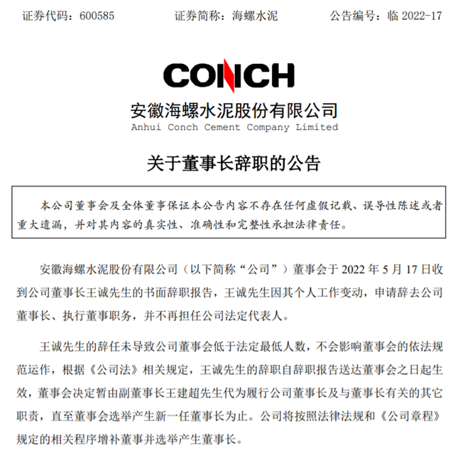 公開資料顯示,王誠出生于1965年3月,安徽淮南人,在擔(dān)任安徽省人民政府副秘書長之前,歷任淮南市副市長、市委常委、常務(wù)副市長,蚌埠市委副書記、蚌埠市市長,安徽海螺集團黨委書記、董事長等職。2013年,王誠調(diào)任蚌埠市委副書記,2016年12月任蚌埠市代市長,2017年2月任蚌埠市市長;2021年4月,王誠任安徽海螺集團有限責(zé)任公司黨委書記、董事長,任期為2021年5月28日-2022年5月29日。2022年5月17日,安徽海螺水泥股份有限公司(簡稱:海螺水泥)發(fā)布公告稱,其董事長王誠因個人工作變動原因,辭去公司董事長、執(zhí)行董事職務(wù),并不再擔(dān)任法定代表人。董事會決定暫由王建超代為履行公司董事長及與董事長有關(guān)的其它職責(zé),直至董事會選舉產(chǎn)生新一任董事長為止。海螺集團作為全世界最大的建材企業(yè)集團之一,王誠在任期即將結(jié)束前匆匆離職,便已引起外界猜測, 6月13日安徽紀檢監(jiān)察網(wǎng)公布的“王誠涉嫌嚴重違紀違法”一事,更是引起了熱議。據(jù)企查查獲悉,安徽省國資委通過安徽省投資集團控股有限公司持有海螺集團51%股權(quán),為控股股東,港股上市公司中國海創(chuàng)控股(香港)有限公司通過蕪湖海創(chuàng)實業(yè)有限責(zé)任公司持有海螺集團49%股權(quán),為參股股東。在上市公司層面,王誠任職期間,海螺水泥作為海螺集團旗下控股子公司,收購了關(guān)聯(lián)企業(yè)海螺新能源,加快對光伏儲能項目的投資,又在資本市場頻頻捧場同行定增,甚至直接增持和舉牌,一改此前低調(diào)的行事風(fēng)格。不僅如此,海螺集團旗下港股公司海螺創(chuàng)業(yè)備受資本市場關(guān)注。3月30日,海螺創(chuàng)業(yè)分拆海螺環(huán)保在港交所主板上市。5月6日,海螺創(chuàng)業(yè)對外宣布正在考慮分拆旗下安徽海創(chuàng)綠能環(huán)保集團股份有限公司在上交所主板獨立上市。如若成行,屆時海螺集團將擁有5家上市平臺。傳統(tǒng)行業(yè)遇發(fā)展瓶頸,加速布局環(huán)保、新能源領(lǐng)域盡管近年來大動作不斷,但海螺集團仍遭遇了發(fā)展瓶頸,業(yè)績增長基本停滯。高能耗、高排放行業(yè)在“碳達峰、碳中和”的雙碳背景下,面臨極大的轉(zhuǎn)型壓力。