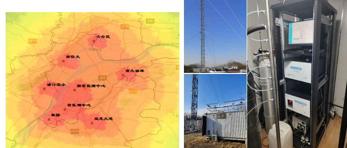 該溫室氣體試點(diǎn)監(jiān)測系統(tǒng)設(shè)在南京大學(xué)仙林校區(qū),利用現(xiàn)有觀測塔在75米、50米、25米三個高度進(jìn)行梯度采樣,實時監(jiān)測主要溫室氣體(CO2和CH4)濃度。該站點(diǎn)點(diǎn)位選址、儀器設(shè)備采樣分析及數(shù)據(jù)質(zhì)控均按照生態(tài)環(huán)境部《碳監(jiān)測評估試點(diǎn)工作方案》要求執(zhí)行,是江蘇省生態(tài)環(huán)境監(jiān)測系統(tǒng)中首個符合城市溫室氣體高精度監(jiān)測點(diǎn)位要求的站點(diǎn),填補(bǔ)了城市高精度溫室氣體監(jiān)測的空白,并首次實現(xiàn)了溫室氣體的梯度自動監(jiān)測。