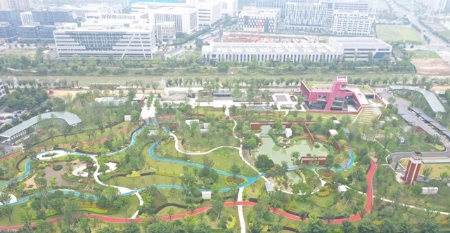 成都市雙流公興(中電子)再生水廠項目設(shè)計規(guī)模10萬噸/日,采用地下式設(shè)計,大大節(jié)約占地面積,地上是開放式生態(tài)綠地公園及科普教育中心,有效滿足城市界面與基礎(chǔ)設(shè)施環(huán)境高度融合,還社會以廣闊的自然空間。同時,項目以新理念、高標準打造,在環(huán)境融合度、建設(shè)標準和功能延伸方面突破傳統(tǒng),賦予了城市基礎(chǔ)設(shè)施更大價值。