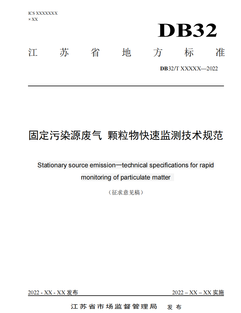 為貫徹《中華人民共和國環(huán)境保護(hù)法》《中華人民共和國大氣污染防治法》《江蘇省大氣污染防治條例》等法律法規(guī),進(jìn)一步規(guī)范江蘇省顆粒物快速監(jiān)測技術(shù)要求,提升大氣污染管控成效,江蘇省生態(tài)環(huán)境廳組織起草了江蘇省地方環(huán)境保護(hù)標(biāo)準(zhǔn)《固定污染源廢氣 顆粒物快速監(jiān)測技術(shù)規(guī)范(征求意見稿)》,并于近日向相關(guān)單位征求意見。