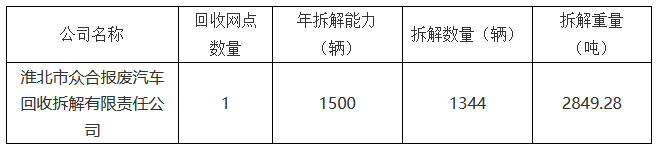 表8 2021年淮北市報廢機(jī)動車拆解企業(yè)情況