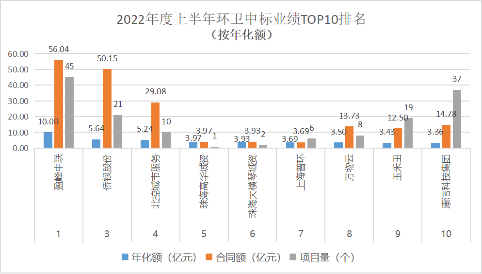 附1:2022年度上半年環(huán)衛(wèi)項(xiàng)目中標(biāo)業(yè)績TOP10排名(按年化額)