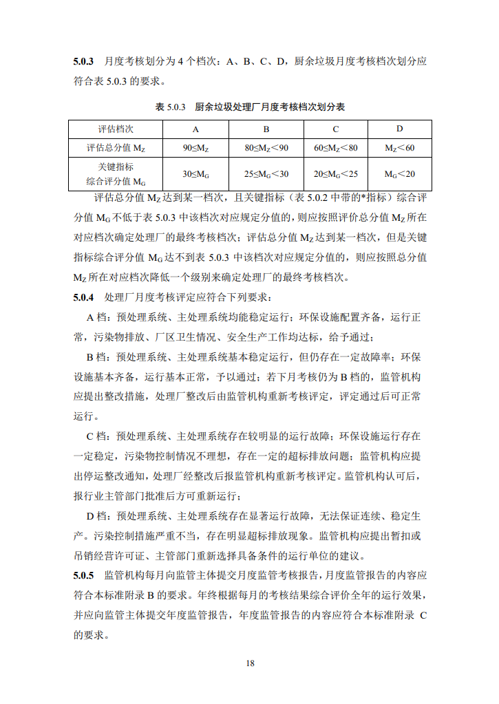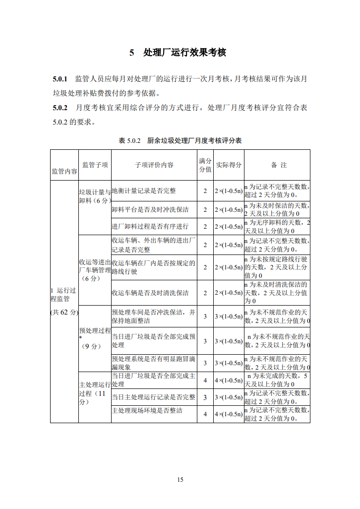 標(biāo)準(zhǔn)指出,監(jiān)管人員應(yīng)每月對(duì)處理廠的運(yùn)行進(jìn)行一次月考核,月考核結(jié)果可作為該月垃圾處理補(bǔ)貼費(fèi)撥付的參考依據(jù)。