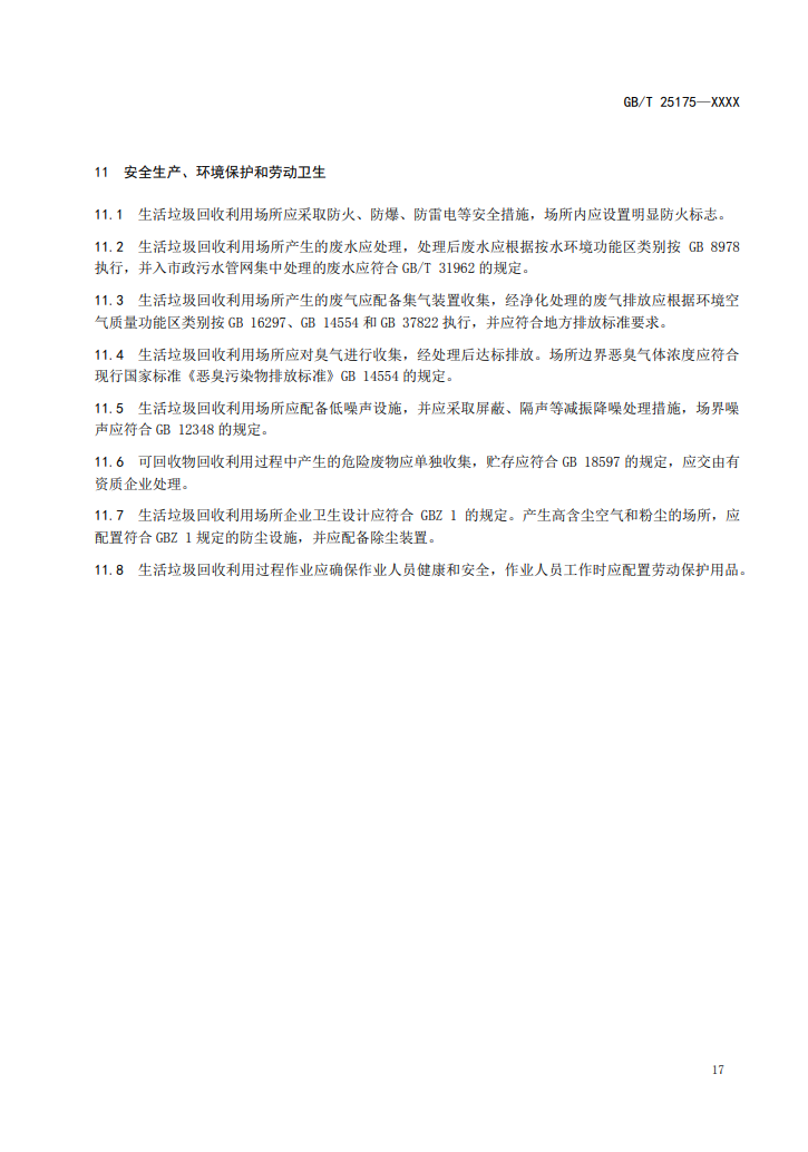 10、生活垃圾回收利用過(guò)程應(yīng)落實(shí)安全生產(chǎn)、產(chǎn)品質(zhì)量、勞動(dòng)保護(hù)等要求。