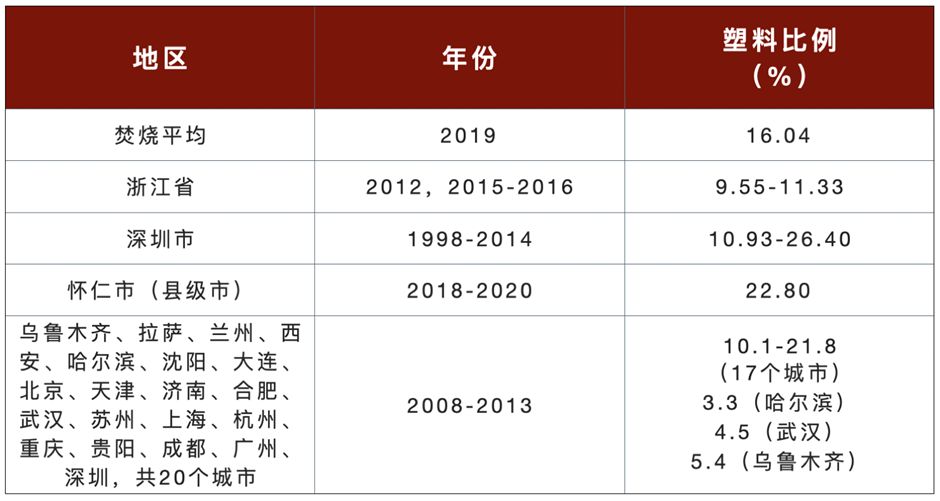 圖9.學術(shù)研究中我國生活垃圾中塑料比例