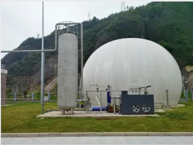 濕式中溫厭氧產(chǎn)沼技術(shù)采用2座2300m³厭氧消化罐24小時(shí)連續(xù)運(yùn)行,溫度控制在38±2℃,厭氧消化產(chǎn)生的沼氣收集輸送至沼氣儲(chǔ)柜,在經(jīng)過一系列凈化處理之后進(jìn)入燃?xì)獍l(fā)電機(jī)發(fā)電或用于冬季建筑取暖用熱系統(tǒng)。