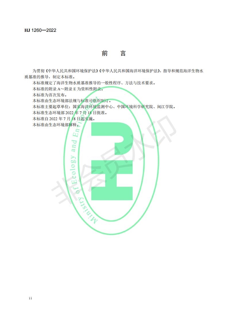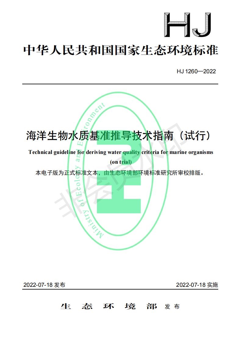 原標題:關于發(fā)布國家生態(tài)環(huán)境標準《海洋生物水質基準推導技術指南(試行)》的公告