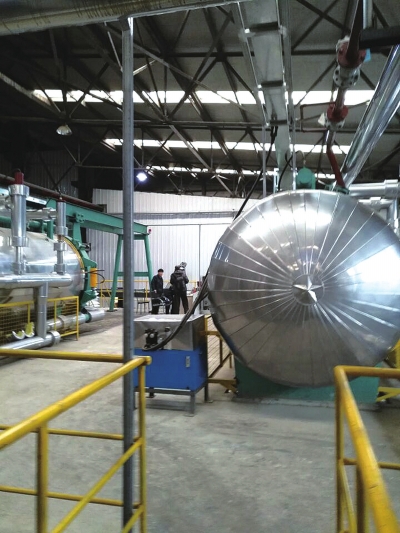 進(jìn)入廠區(qū),現(xiàn)代化的廠房、辦公樓和景觀綠化,似乎和餐廚垃圾處理工廠不相符。更讓人意外的是,從設(shè)有辦公、實(shí)驗(yàn)、生產(chǎn)控制中心、會(huì)議室、生產(chǎn)流程演示、產(chǎn)品成列等功能的現(xiàn)代化辦公樓出來后,走進(jìn)生產(chǎn)車間,除了可見4個(gè)大型餐廚垃圾喂料口外(即餐廚垃圾運(yùn)輸車傾倒口),全是大型箱體、罐體,以及各種粗細(xì)的管子相連,一道道工序?qū)崿F(xiàn)了自動(dòng)化,看不見一點(diǎn)餐廚垃圾,這里像一座現(xiàn)代化的啤酒車間?!巴耆珜?shí)現(xiàn)了自動(dòng)化?!?/p>