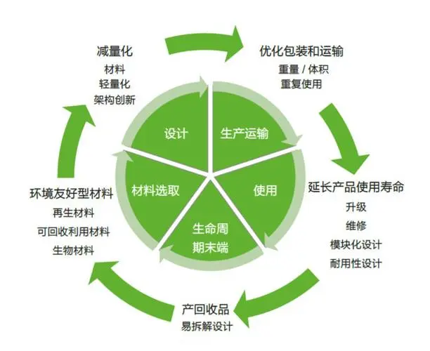 通過對設(shè)計結(jié)構(gòu)的改進(jìn),輕量化設(shè)計,材料循環(huán)回收利用等,從而減少自然資源的使用,可從生產(chǎn)加工、消費(fèi)使用、用后遺棄等方面全面減少對生態(tài)的破壞。