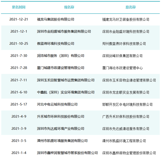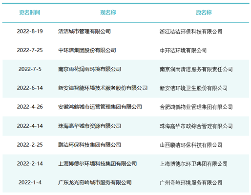 作為玉禾田[300815]最主要的環(huán)衛(wèi)項(xiàng)目投標(biāo)主體,玉禾田物業(yè)清潔公司在名稱上用“智慧城市運(yùn)營”替換“物業(yè)清潔”,則是希望轉(zhuǎn)型邁向智慧城市運(yùn)營商之路。司南君在對近八年的更名規(guī)律進(jìn)行總結(jié)與梳理發(fā)現(xiàn),環(huán)衛(wèi)企業(yè)“更名潮”大概可以分為三個階段。第一波更名潮從2015-2018年。第一波更名潮追求專業(yè)化發(fā)展道路,這個時期的更名熱詞是“環(huán)境服務(wù)”、“環(huán)境科技”、”環(huán)保產(chǎn)業(yè)“、“環(huán)保技術(shù)”,一大批清潔公司、保潔公司、環(huán)衛(wèi)公司、物業(yè)公司更名為“環(huán)境服務(wù)公司”、“環(huán)境科技公司”、”環(huán)保技術(shù)公司“。第二波更名潮從2019年到2021年。第二波更名潮集體轉(zhuǎn)向城市綜合服務(wù)方向。這一時期的更名熱點(diǎn)是“城市管理”、“城市服務(wù)”、“城市管家”、“智慧城市運(yùn)營”、“公共事業(yè)管理”等,用這些熱詞替代“環(huán)保技術(shù)”、“環(huán)衛(wèi)服務(wù)”、“環(huán)境科技”、“環(huán)境服務(wù)”等傳統(tǒng)環(huán)衛(wèi)詞匯。進(jìn)入2022年度,環(huán)衛(wèi)企業(yè)迎來第三波更名潮。今后一定時期,環(huán)衛(wèi)行業(yè)的發(fā)展將面臨多重挑戰(zhàn),環(huán)衛(wèi)企業(yè)更名也將更富多元化,因此企業(yè)更名也必將根據(jù)每家公司對行業(yè)發(fā)展的理解認(rèn)識及自身戰(zhàn)略定位而各有側(cè)重。2015年到2018年是環(huán)衛(wèi)市場化第一波大發(fā)展時期。圖表1:2018年度更名“百強(qiáng)企業(yè)”這期間,環(huán)衛(wèi)市場化大閘初步敞開,PPP模式引入環(huán)衛(wèi)領(lǐng)域,城鄉(xiāng)環(huán)衛(wèi)一體化模式如火如荼,年化額超千萬元、合同額超億元的環(huán)衛(wèi)大標(biāo)開始批量出現(xiàn),傳統(tǒng)物業(yè)清潔企業(yè)、非環(huán)衛(wèi)類物業(yè)公司大量涌入環(huán)衛(wèi)行業(yè)。圖表2:2017年度更名“百強(qiáng)企業(yè)”因此,環(huán)衛(wèi)企業(yè)第一波更名潮追求專業(yè)化發(fā)展道路,這個時期的更名熱詞是“環(huán)境服務(wù)”、“環(huán)境科技”、”環(huán)保產(chǎn)業(yè)“、“環(huán)保技術(shù)”,一大批清潔公司、保潔公司、環(huán)衛(wèi)公司、物業(yè)公司更名為“環(huán)境服務(wù)公司”、“環(huán)境科技公司”、”環(huán)保技術(shù)公司“。圖表3:2016年度更名“百強(qiáng)企業(yè)”圖表4:2015年度更名“百強(qiáng)企業(yè)”這期間有近40家百強(qiáng)企業(yè)或日后發(fā)展成百強(qiáng)企業(yè)的環(huán)衛(wèi)公司完成了更名,如福建東飛環(huán)境集團(tuán)有限公司、濱南生態(tài)環(huán)境集團(tuán)股份有限公司、北京慧豐清軒環(huán)境科技集團(tuán)有限公司、河北人和環(huán)境科技有限公司、浙江波普環(huán)境服務(wù)有限公司、深圳市陽光三環(huán)生態(tài)環(huán)境股份有限公司、深圳世路源環(huán)境有限公司(深兄環(huán)境)、廣東美保環(huán)境技術(shù)有限公司、泓欣環(huán)境集團(tuán)有限公司等。第二波:從“環(huán)衛(wèi)服務(wù)”到“城市管家”2019年到2021年是“環(huán)衛(wèi)市場化”高潮向“城市大管家模式”的轉(zhuǎn)型期初期。圖表5:2021年度更名“百強(qiáng)企業(yè)”這期間,環(huán)衛(wèi)市場化從大發(fā)展走向大高潮,城市精細(xì)化管理從“理念”走向“實(shí)踐”,各路國有物業(yè)公司積極推動城市大管家模式,大批頭部物管企業(yè)通過大并購等方式搶灘環(huán)衛(wèi)及城市服務(wù)市場。圖表6:2020年度更名“百強(qiáng)企業(yè)”由此,順應(yīng)時代大潮,環(huán)衛(wèi)企業(yè)第二波更名潮集體轉(zhuǎn)向城市綜合服務(wù)方向。這一時期的更名熱點(diǎn)是“城市管理”、“城市服務(wù)”、“城市管家”、“智慧城市運(yùn)營”、“公共事業(yè)管理”等,用這些熱詞替代“環(huán)保技術(shù)”、“環(huán)衛(wèi)服務(wù)”、“環(huán)境科技”、“環(huán)境服務(wù)”等傳統(tǒng)環(huán)衛(wèi)詞匯。圖表7:2019年度更名“百強(qiáng)企業(yè)”這期間有40余家知名環(huán)衛(wèi)企業(yè)完成了更名,如僑銀城市管理股份有限公司、北控城市環(huán)境服務(wù)集團(tuán)有限公司、深圳玉禾田智慧城市運(yùn)營集團(tuán)有限公司、深圳市鑫梓潤智慧城市管家股份有限公司、康潔科技集團(tuán)有限公司、西安高科城市服務(wù)管理有限責(zé)任公司、溫州市鹿城區(qū)城市管理服務(wù)有限公司、廣東路通公用事業(yè)管理集團(tuán)有限公司、深圳市金陽盛城市服務(wù)集團(tuán)有限公司。第三波:多重挑戰(zhàn)并存轉(zhuǎn)型期進(jìn)入2022年度,環(huán)衛(wèi)企業(yè)迎來第三波更名潮。這一時期也將是城市管家模式完成第一輪測試后的大發(fā)展時期。圖表8:2022年度更名“百強(qiáng)企業(yè)”(截止2022年8月份)今后一定時期,環(huán)衛(wèi)行業(yè)的發(fā)展將面臨多重挑戰(zhàn):(一)以電動環(huán)衛(wèi)車、氫能環(huán)衛(wèi)車等為代表的“新能源化”;(二)以智慧環(huán)衛(wèi)與無人操作環(huán)衛(wèi)裝備為代表的“智能化”;(三)以城市大管家為代表的城市管理“精細(xì)化”;(四)以