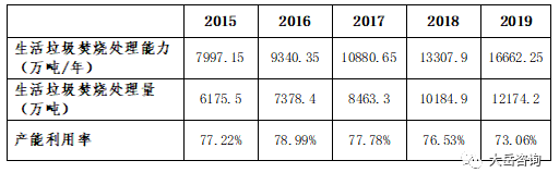 表 2近5年全國(guó)生活垃圾焚燒項(xiàng)目產(chǎn)能及利用情況