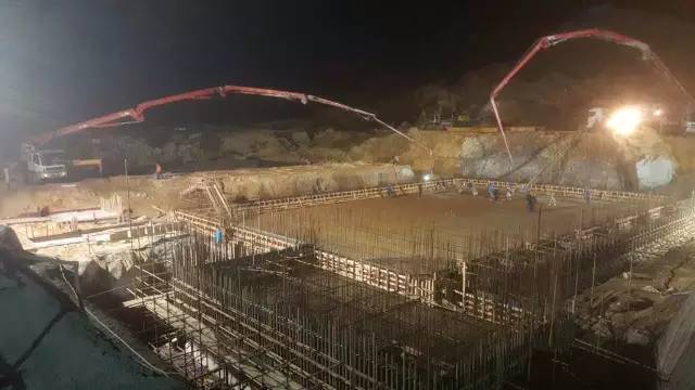 (2017年1月17日,垃圾坑水泥澆筑連夜施工。)