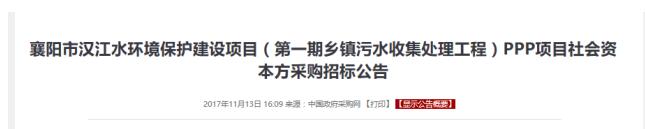 一、項(xiàng)目名稱:襄陽市漢江水環(huán)境保護(hù)建設(shè)項(xiàng)目(第一期鄉(xiāng)鎮(zhèn)污水收集處理工程)PPP項(xiàng)目社會(huì)資本方采購
