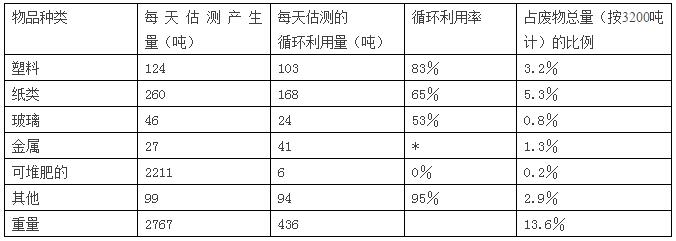 *由于數(shù)據(jù)采集時,將市內工廠對從市外運送來的金屬進行的循環(huán)利用計算在內,所以循環(huán)利用量高于金屬廢物的產生量。