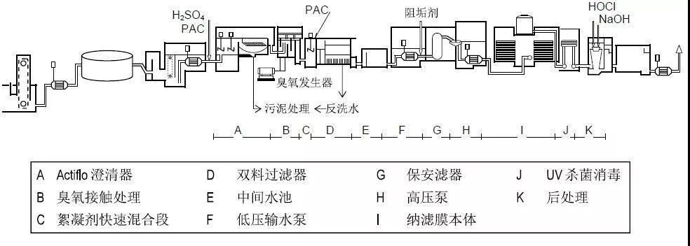 圖3 法國Mery-sur-Oise水廠NF飲用水深度處理工藝流程圖