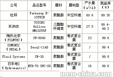 表2 國外典型的海水反滲透組件
