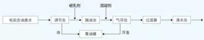 此法采用SPD型高效氣浮裝置,利用其特殊的“零速度”原理:原水從氣浮池中心旋轉(zhuǎn)頭進(jìn)入,通過(guò)配水器布水,配水器移動(dòng)速度和進(jìn)水的流速相同,方向相反,產(chǎn)生了“零速度”,這樣進(jìn)水不會(huì)對(duì)原水產(chǎn)生擾動(dòng),使得顆粒的懸浮和沉降在一種靜態(tài)下進(jìn)行。秦皇島熱電廠就是利用此法,對(duì)廠內(nèi)工業(yè)廢水處理回收利用的,不再向原排污口新開(kāi)河排放污水,減少了對(duì)渤海灣的污染,具有明顯的環(huán)境效益。總之,對(duì)于電廠含油廢水的乳化油,一般均采用氣浮法予以去除,除油效率較高。下圖為安陽(yáng)電廠工業(yè)廢水處理與回收利用工藝…