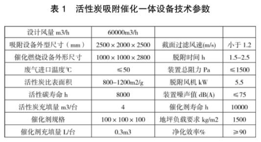 項(xiàng)目采用吸附濃縮+催化燃燒組合工藝,活性炭對VOCs吸附濃縮,脫附后可重復(fù)使用,脫附下來的濃縮VOCs通過催化劑電加熱實(shí)現(xiàn)低溫燃燒,達(dá)到處理污染物的目的,燃燒熱風(fēng)循環(huán)使用于活性炭脫附,達(dá)到節(jié)能目的。設(shè)備具體特性如下: