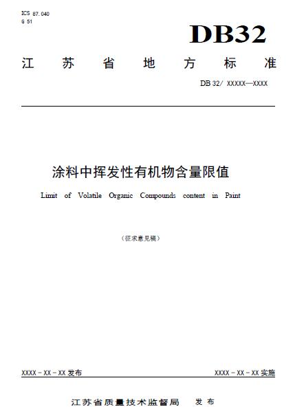 日前,江蘇省地方標準《涂料中揮發(fā)性有機物含量限值》(征求意見稿)已經(jīng)公布。征求意見稿對江蘇省涂料中VOCs含量限值做了詳細規(guī)定。