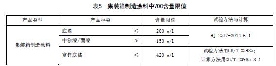 集裝箱制造涂料中VOC含量限值應符合表5的規(guī)定。