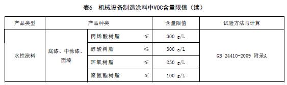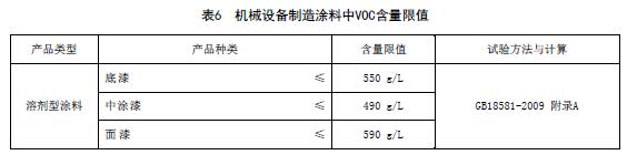機械設備制造涂料中VOC含量限值應符合表6的規(guī)定。