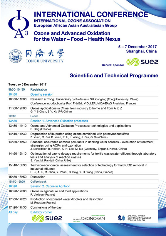 由國際臭氧協(xié)會(International Ozone Association European African Asian Australasian Group, IOA-EA3G)和同濟大學(xué)聯(lián)合舉辦的“臭氧和高級氧化技術(shù):水、食品與健康”國際研討會,將于12月5-7日在上海同濟大學(xué)召開,我們誠摯地邀請您撥冗參加。