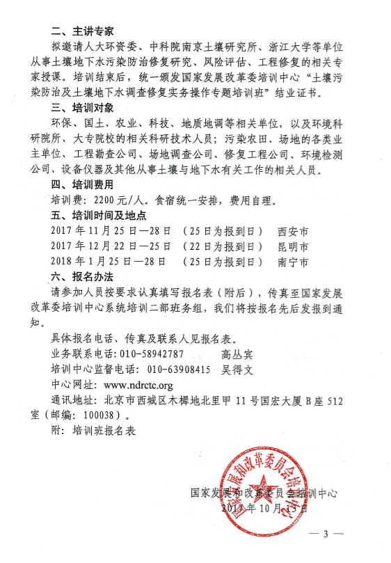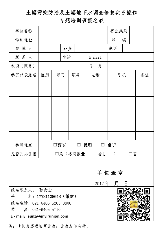 附件:土壤污染防治及土壤地下水調(diào)查修復(fù)實務(wù)操作專題培訓班報名表