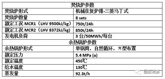 項目一期工程由3x150t/d的逆向推飼馬丁式垃圾焚燒設(shè)備為核心組成三條垃圾焚燒處理生產(chǎn)線,配置7.5MW凝氣式汽輪發(fā)電機組。煙氣處理采用了循環(huán)流化反應+活性炭噴射+布袋除塵+尾氣在線監(jiān)測的半干式循環(huán)流化煙氣處理裝置。