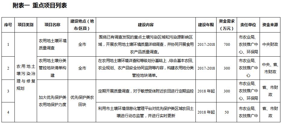 (三)明確治理修復任務(wù)清單:對于治理修復類農(nóng)田,開展進一步詳細土壤環(huán)境調(diào)查,摸清具體污染源與污染分布情況,建立農(nóng)田治理修復類地塊清單,將有關(guān)地塊移出基本農(nóng)田區(qū)。分批次編制農(nóng)田污染治理修復方案,明確農(nóng)田土壤污染治理與修復重點任務(wù)、責任單位和分年度實施計劃,建立農(nóng)田土壤污染治理與修復項目庫。明確重點任務(wù)清單,確定年度實施計劃,分批次開展農(nóng)田土壤治理修復工作。