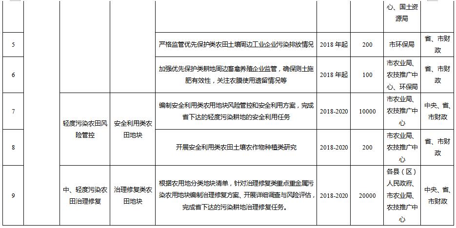 到2020年,受污染耕地安全利用率達到90%左右,污染地塊安全利用率達到90%以上,完成省級下達的污染耕地、污染地塊安全利用或治理修復任務(wù)。