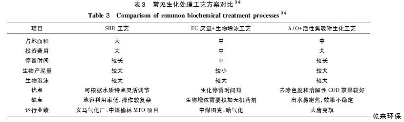 對于魯奇氣化工藝所產廢水建議采用厭氧/水解+二級A/O 工藝,去除大部分酚、COD、氨氮、總氮等。對于粉煤爐或水煤漿爐氣化所產廢水建議采用二級A/O 工藝,去除大部分氨氮、總氮。常見生化處理工藝方案對比[14]見表3。