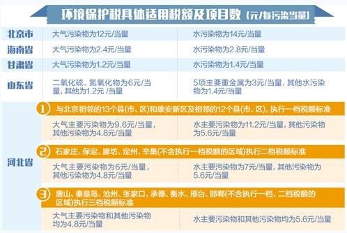 日前,北京市應(yīng)稅大氣污染物和水污染物適用稅額標(biāo)準(zhǔn)獲市人大常委會(huì)審議通過,分別為每污染當(dāng)量12元和14元,按法定幅度“頂格”執(zhí)行。從目前各地發(fā)布的方案來看,環(huán)保稅稅額標(biāo)準(zhǔn)相對較高的有北京、上海、天津、河北、山東等地。以應(yīng)稅大氣污染物適用稅額標(biāo)準(zhǔn)為例,河北按照國家規(guī)定最低標(biāo)準(zhǔn)的8倍、5倍、4倍執(zhí)行;上海二氧化硫、氮氧化物的稅額標(biāo)準(zhǔn)分別為每污染當(dāng)量6.65元和7.6元;山東二氧化硫、氮氧化物每污染當(dāng)量6元。