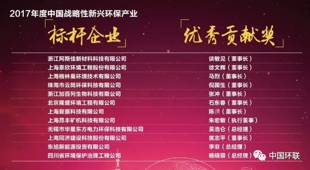 2017年度中國戰(zhàn)略性新興環(huán)保產(chǎn)業(yè)標(biāo)桿企業(yè)與優(yōu)秀貢獻獎