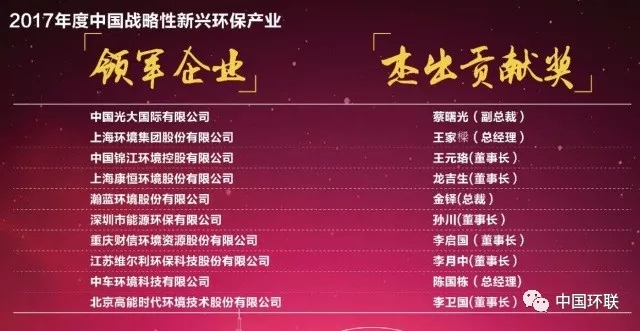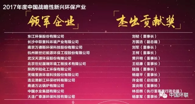 2017年度中國戰(zhàn)略性新興環(huán)保產(chǎn)業(yè)領(lǐng)軍企業(yè)與杰出貢獻獎