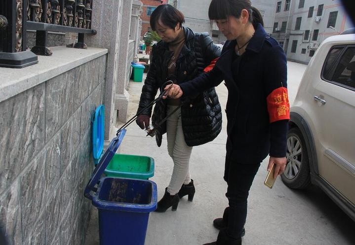 按照制度設(shè)計(jì),每戶村民需從源頭分類、定時(shí)定點(diǎn)投放。剛開(kāi)始村干部、黨員代表、婦聯(lián)成員每天定崗輪值,在垃圾投放點(diǎn)現(xiàn)場(chǎng)宣傳,指導(dǎo)村民投放垃圾。同時(shí),根據(jù)具體情況,黨員、代表就近、就便、就親負(fù)責(zé)3-10戶村民,并由婦聯(lián)成員開(kāi)展每天一次的入戶檢查,做好評(píng)比記錄,在公告欄上張貼。