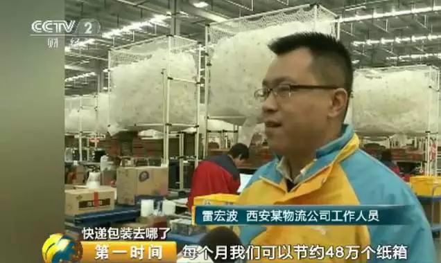 西安某物流公司工作人員 雷宏波:每個(gè)月我們可以節(jié)約48萬個(gè)紙箱,按照一個(gè)紙箱按照0.1公斤算的話,我們每個(gè)月可以節(jié)約48噸的紙箱垃圾。