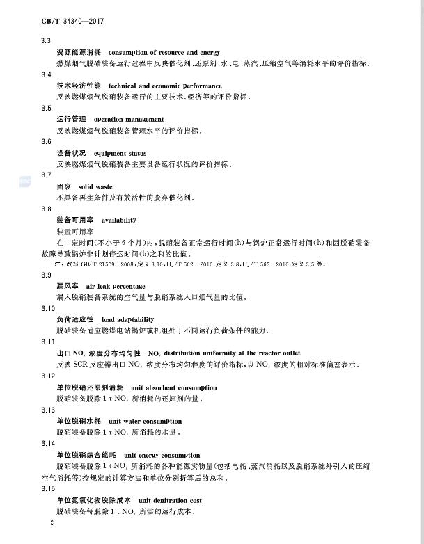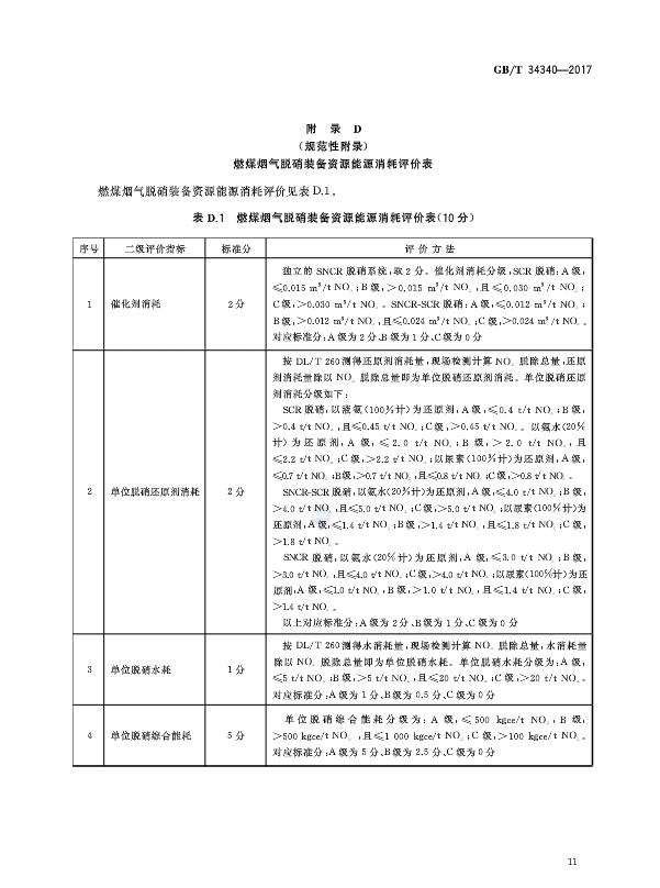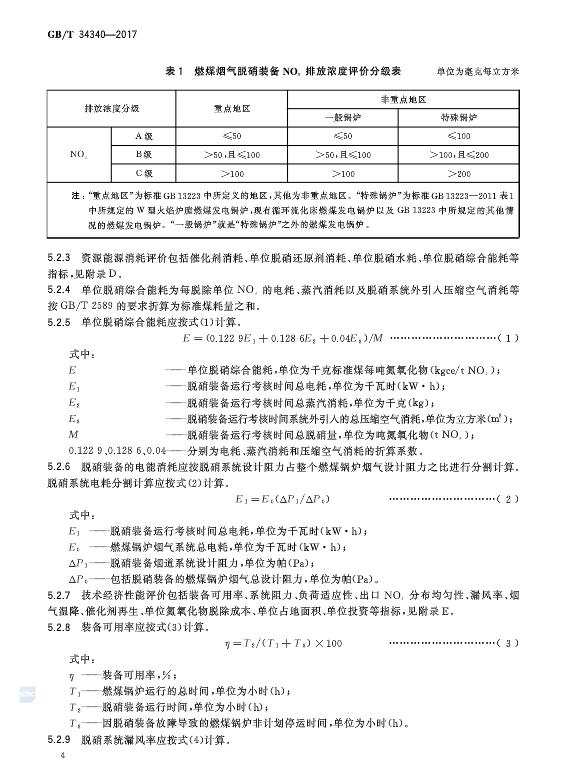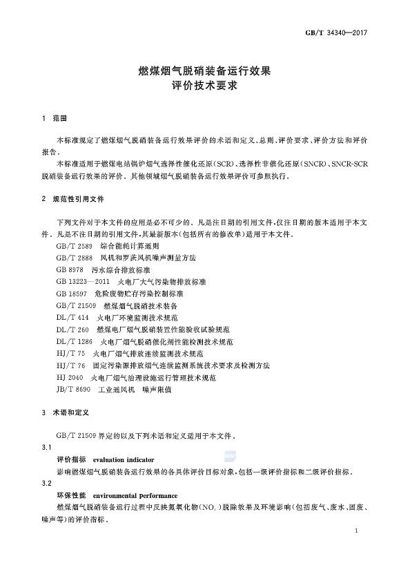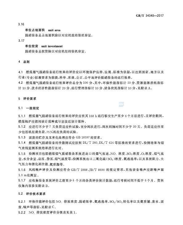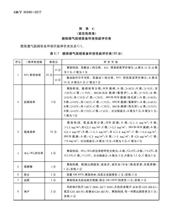 燃煤煙氣脫硝裝備運(yùn)行效果評(píng)價(jià)技術(shù)要求 GB/T 34340-2017